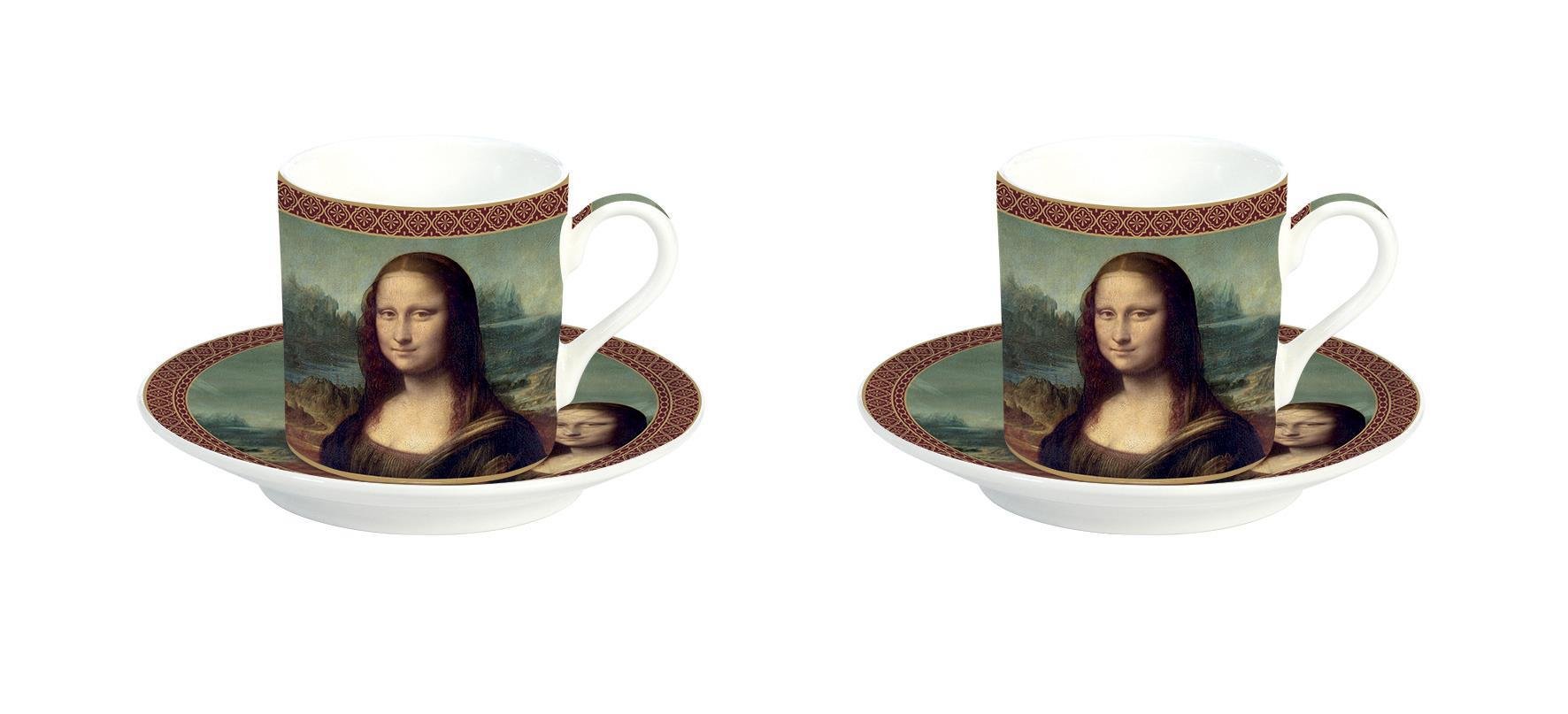 Leonardo da Vinci'nin Mona Lisa porselen espresso fincanları ve tabakları. Hediye kutusunda paketlenmiştir.