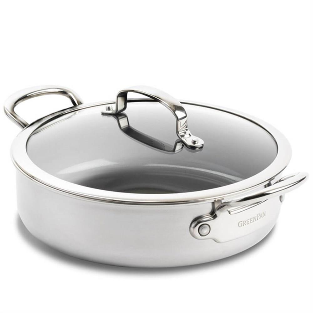 GreenPan’in Première paslanmaz çelik koleksiyonu, pişirme kaplarınızın yeni gibi görünmesini sağlamak için gelişmiş yapışmaz kaplama ile yenilikçi ve dayanıklıdır. Profesyonel kalitede 3 katlı paslanmaz çelikten yapılmış tencere, hızlı ve eşit ısı dağılımı için alüminyum bir çekirdeğe sahiptir. Paslanmaz çelik, Evershine teknolojisi ve elmaslarla zenginleştirilmiş gelişmiş Thermolon Infinity Pro kaplama sayesinde lekelere ve renk solmasına karşı korunur. Bu sağlıklı seramik yapışmaz kaplama, yoğun günlük kullanım için idealdir.