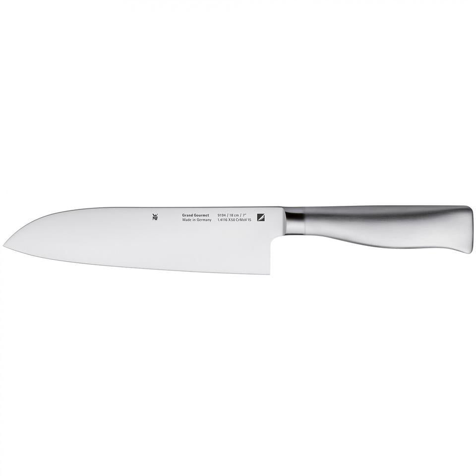 Japon Santoku bıçağı, olağanüstü keskinliği ve özel şekliyle öne çıkar. Sap kısmından daha geniş olan kesici kısmı sayesinde, kesme işlemi sırasında parmaklarınız için daha fazla yer kalır. Avrupalı muadillerinden daha hafif olsa da tıpkı onlar kadar çok yönlüdür. Şimdi WMF, mutfakların bu olmazsa olmaz parçasına yeni bir soluk getirdi. Grand Gourmet Santoku Bıçağı, uzun ömürlü performansı garantileyen Performance Cut teknolojisi ile etkileyici bir keskinlik ve dayanıklılık sunar. 18 cm uzunluğundaki kesici kısım, korozyona ve aside karşı dayanıklı özel çelik kullanılarak elde şekillendirilir ve her gün, her kesişte benzersiz performans gösteren bir Santoku bıçağı ortaya çıkar. Grand Gourmet koleksiyonu, ünlü Japon tasarımcı Makio Hasuik'in birçok ödül kazanan tasarımıyla her mutfakta öne çıkan birinci sınıf kaliteli ürünler içerir. Zarif paslanmaz çelik görünümü ve olağanüstü kesme performansıyla WMF kalite standartlarına sahip yüksek performanslı mutfak bıçaklarını keşfedin.