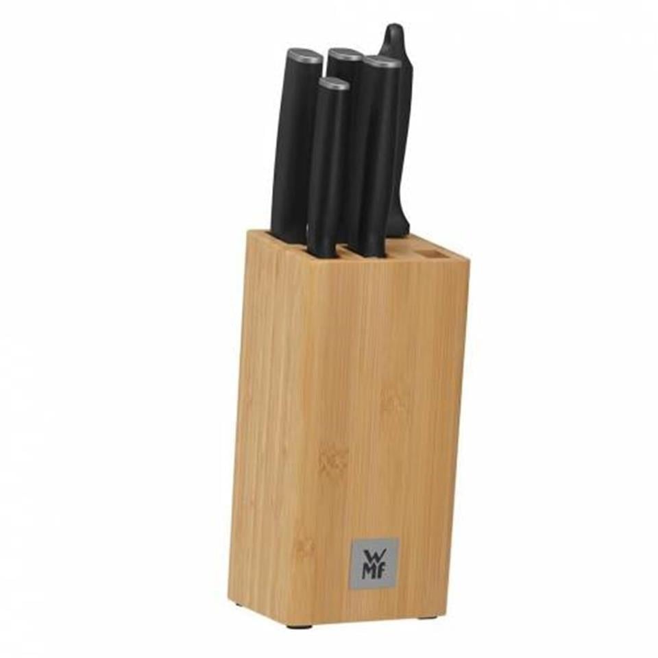 Her zaman en doğru bıçaklar Meyve ve sebzelerden et, ekmek ve çok daha fazlasına. WMF Kineo Bıçak Seti, gündelik kesme işlerinizin tamamının kolaylıkla üstesinden gelir. Uzun ömürlü keskinlik sağlamak amacıyla WMF'nin Performance Cut teknolojisi ile üretilen bu ergonomik mutfak bıçakları ikonik ve kinetik tasarımın yanı sıra birinci sınıf paslanmaz Alman çeliğinden üretilen, ikincil kesim tasarımlı özel sertleştirilmiş kesici kısımlara sahiptir. Altı parçalı sette bambu bıçak standı, şef bıçağı, sebze bıçağı, ekmek bıçağı, et bıçağı ve masat bulunur. Kineo mutfak bıçakları serisi, harekete geçmeye hazır kinetik tasarımla titizlikle üretilen bıçaklardan oluşur. Doğrama ve dilimleme işlemlerini kolaylaştıran kusursuz performans için geliştirildi.